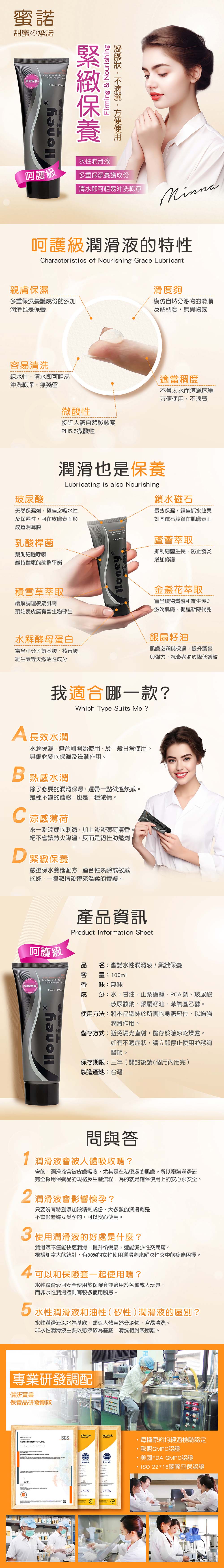 產品名:蜜諾水性潤滑液│緊緻保養